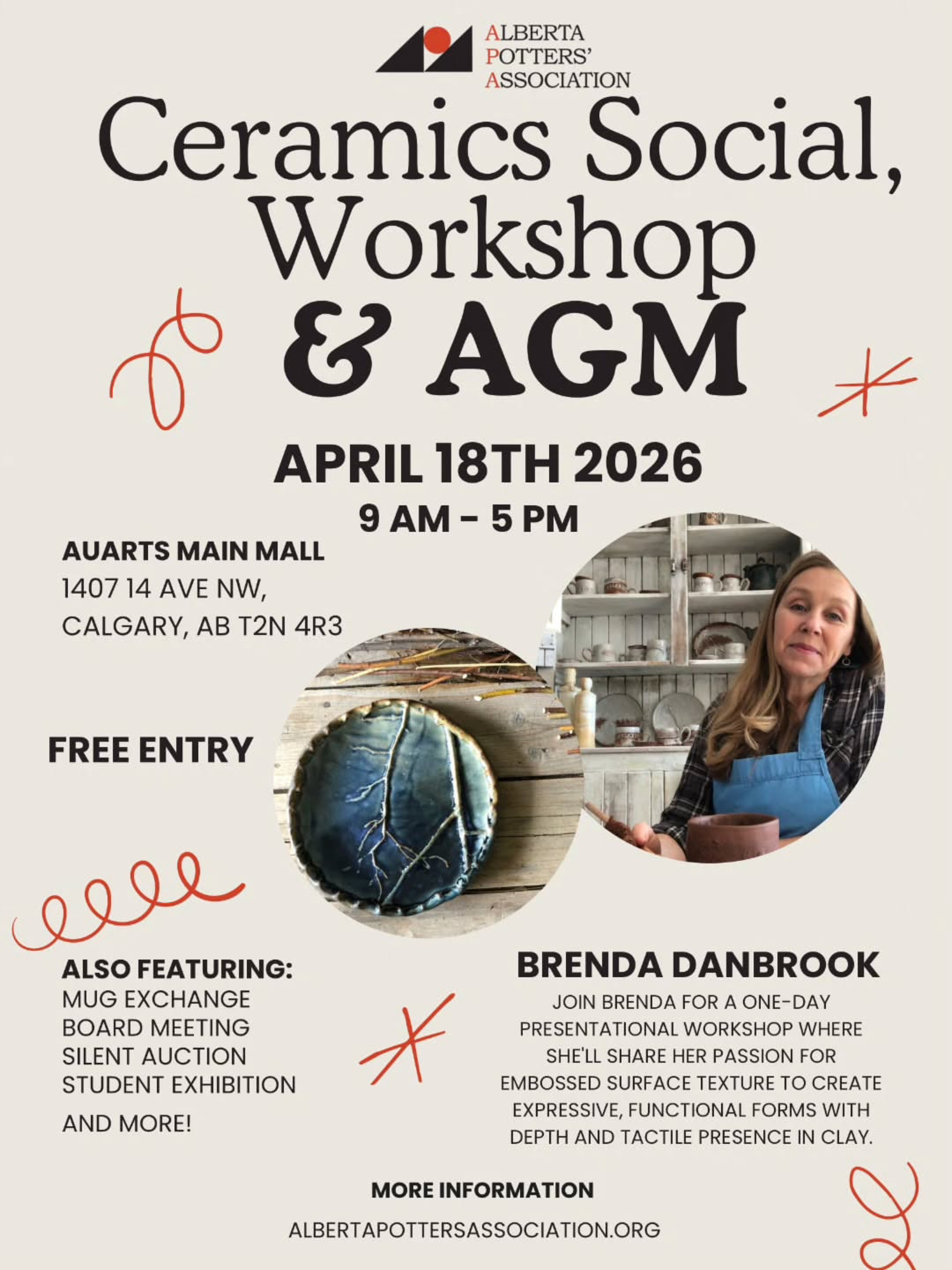 The Alberta Potters' Association will host its Annual General Meeting and Ceramics Social at Alberta University of the Arts on April 18, from 9 a.m. to 5 p.m. The event is free to attend.