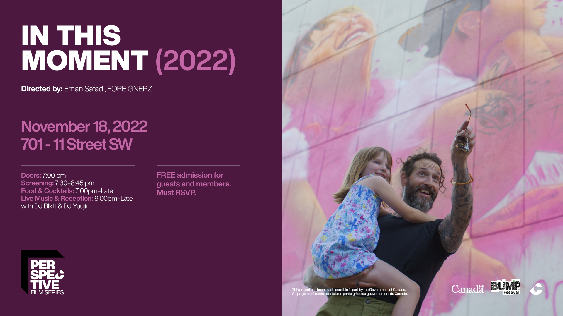 Learn more and RSVPJoin Contemporary Calgary for BUMP’s first documentary film by FOREIGNERZ, IN THIS MOMENT, about Calgary-based muralist Alex Kwong.