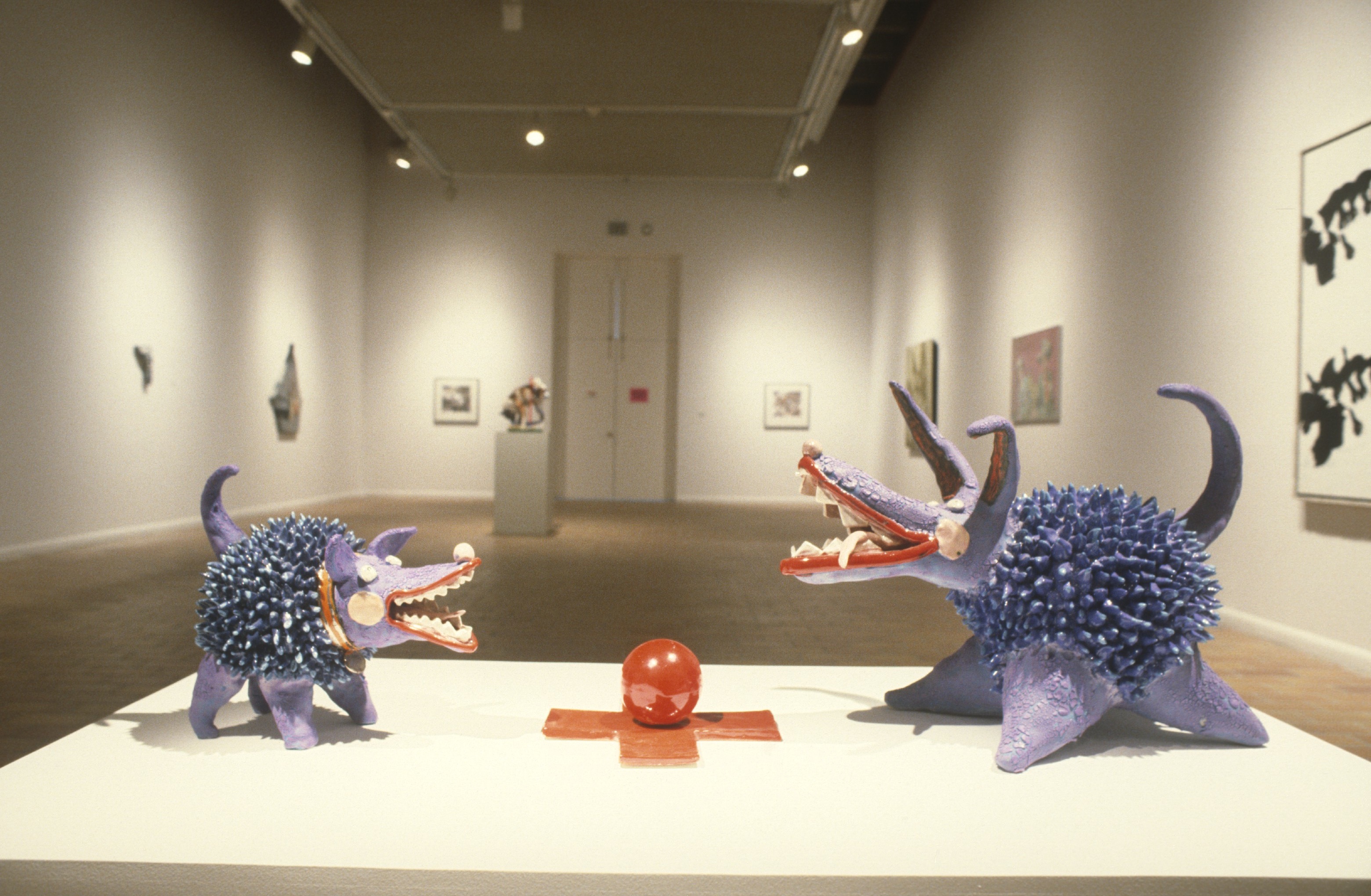 Ark includes Alexandra Haesekcr's sheepdogs, Attilla Richard Lukac's monkeys, Joe Fafard 's frisky foxes and birthing cow, and Brian Cooley's dinosaurs. Cooley's contributions are the one-tenth-scale, working model for his current life-sized work-in-progress, a pachyrhinosaurus, and a bronze made in the same scale as the model.