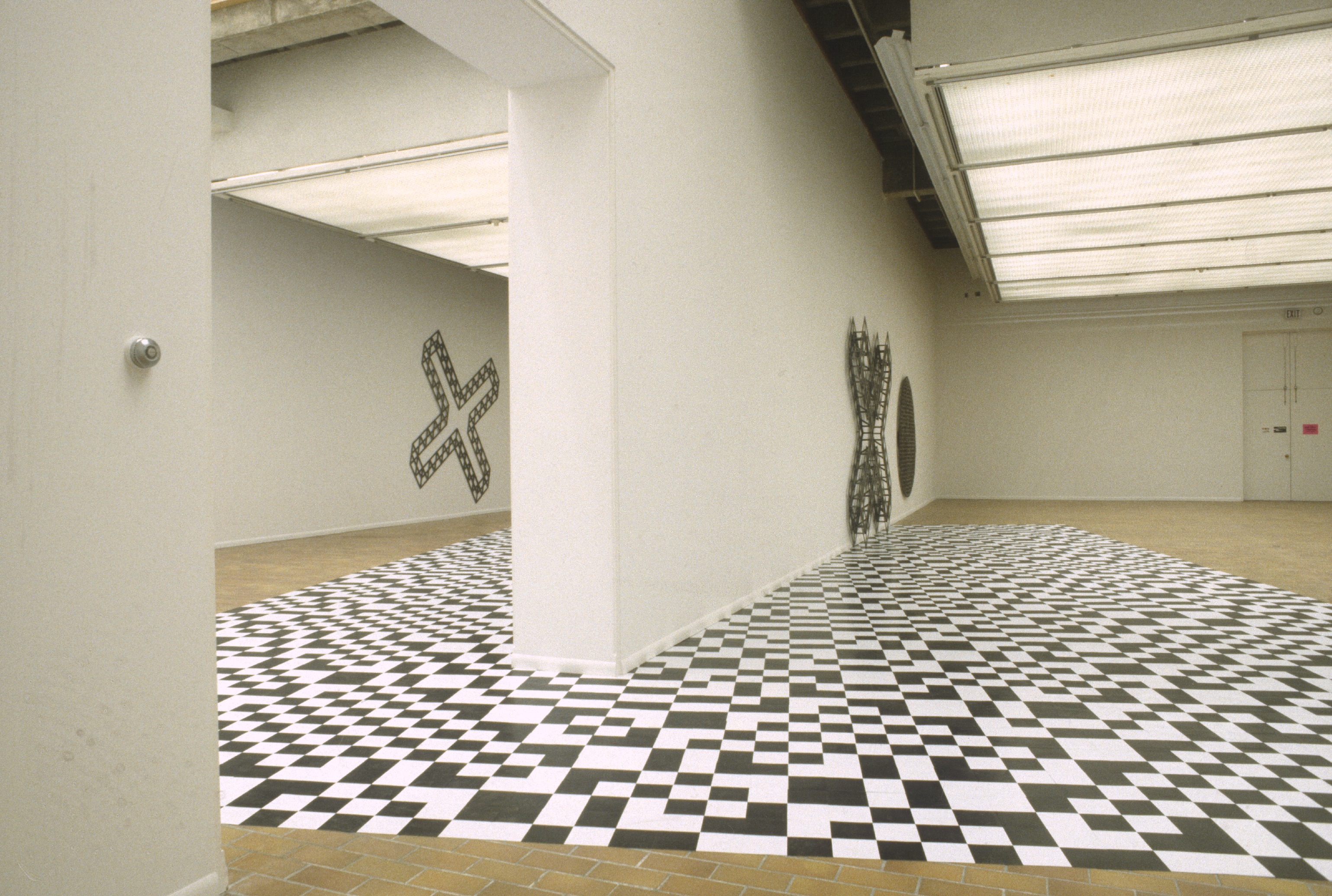Schwarz, a sculptor, and Stamp, a painter, write: "Beginning in February, 1992, through a series of discussions and written exchanges, we clarified many creative and conceptual overlaps in our individual practices. Besides the evident use of geometric abstraction, we share an underlying subversive stance to our respective disciplines ... For the exhibition, each artist will ... [push] the boundaries .... Arlene Stamp will remove the 'painting' from the wall ... while Judith Schwarz will locate the 'sculpture' on the site of painterly illusion in her dissolution of the opaque wall."