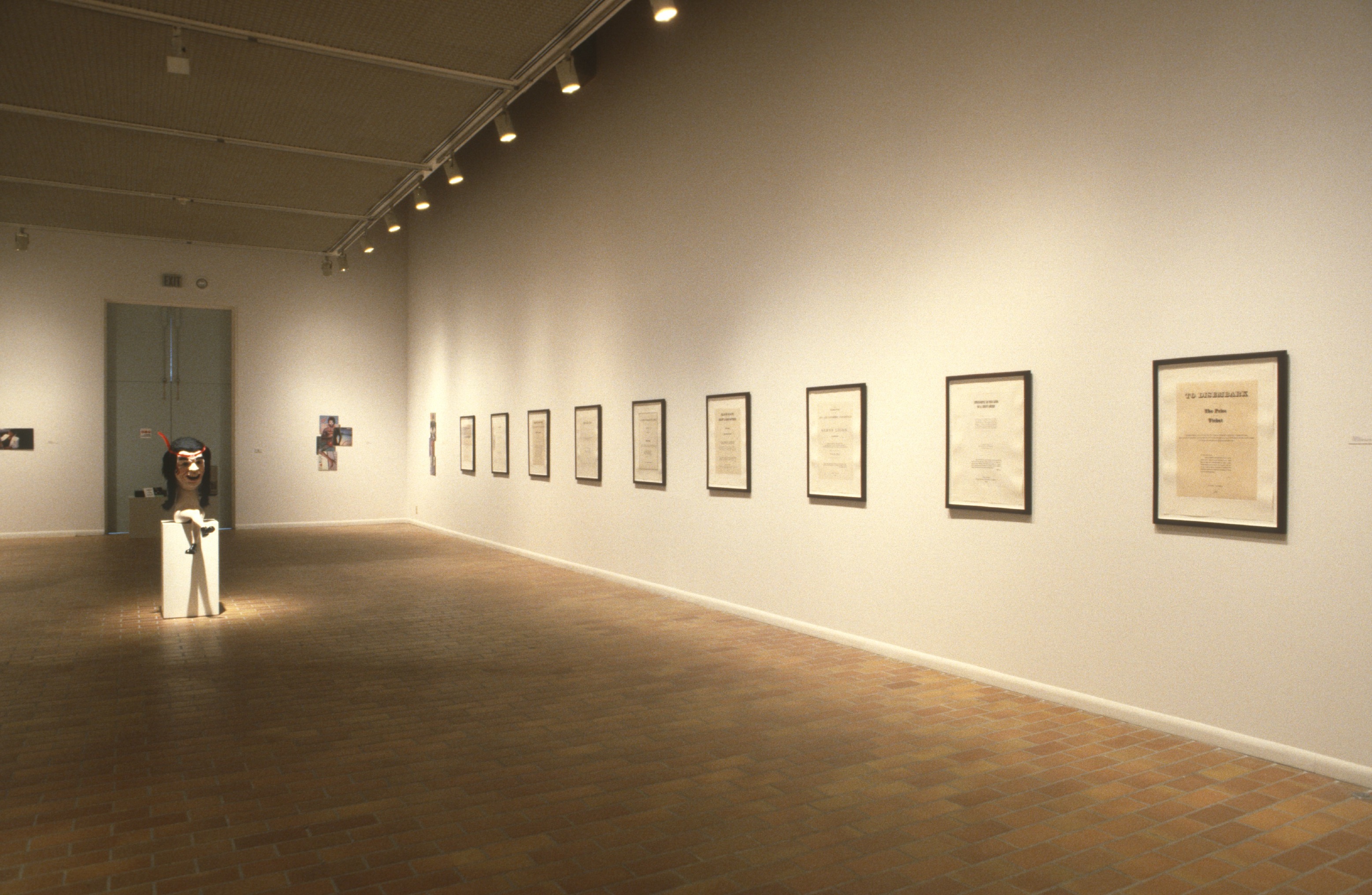 Artists in the exhibition are Jimmie Durham, Bob Flanagan and Sheree Rose, Guillermo Gomez-Pena, Jenny Holzer, Mike Kelley and Paul McCarthy, Komar & Melamid, Charles LeDray, Glenn Ligon, Christian Marclay, Paul McCarthy, Yasumasa Morimura, Catherine Opie, Adrian Piper, Cindy Sherman, Anna Deavere Smith, Meyer Vaisman, Kukuli Velarde, and Fred Wilson. A 72-page illustrated catalogue with an essay by guest curator Ralph Rugoff, an independent curator and writer based in Los Angeles, accompanies the exhibition.