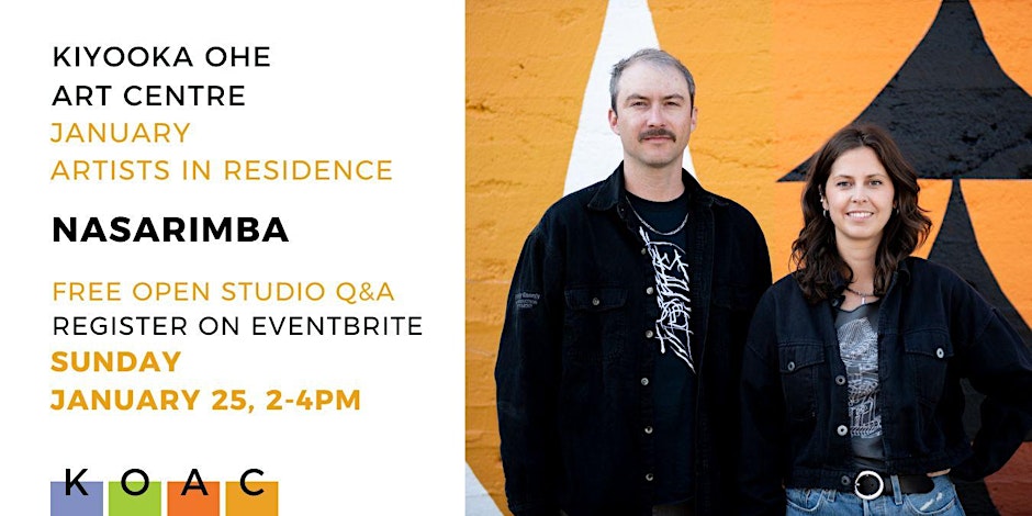 Get ticketsPlease join us at the Kiyooka Ohe Arts Centre (KOAC) for a special Open Studio Q&A with their January Artists-in-Residence, NASARIMBA