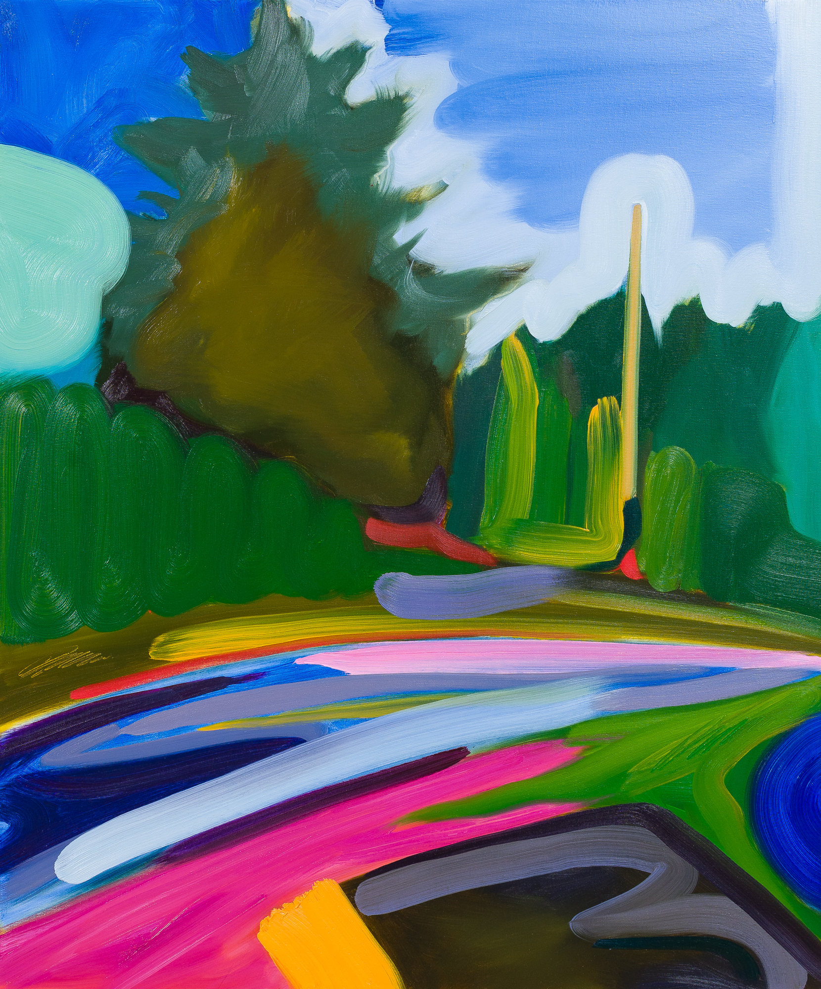 10989 Dunlop Road focuses on Gynd's paintings from his mother's garden in Kwekwenis (Lang Bay), British Columbia, Canada. In this series—collectively titled after the location’s address—Gynd presents multiple iterations on a grouping of trees surrounding the entrance to the south-of-town property.
