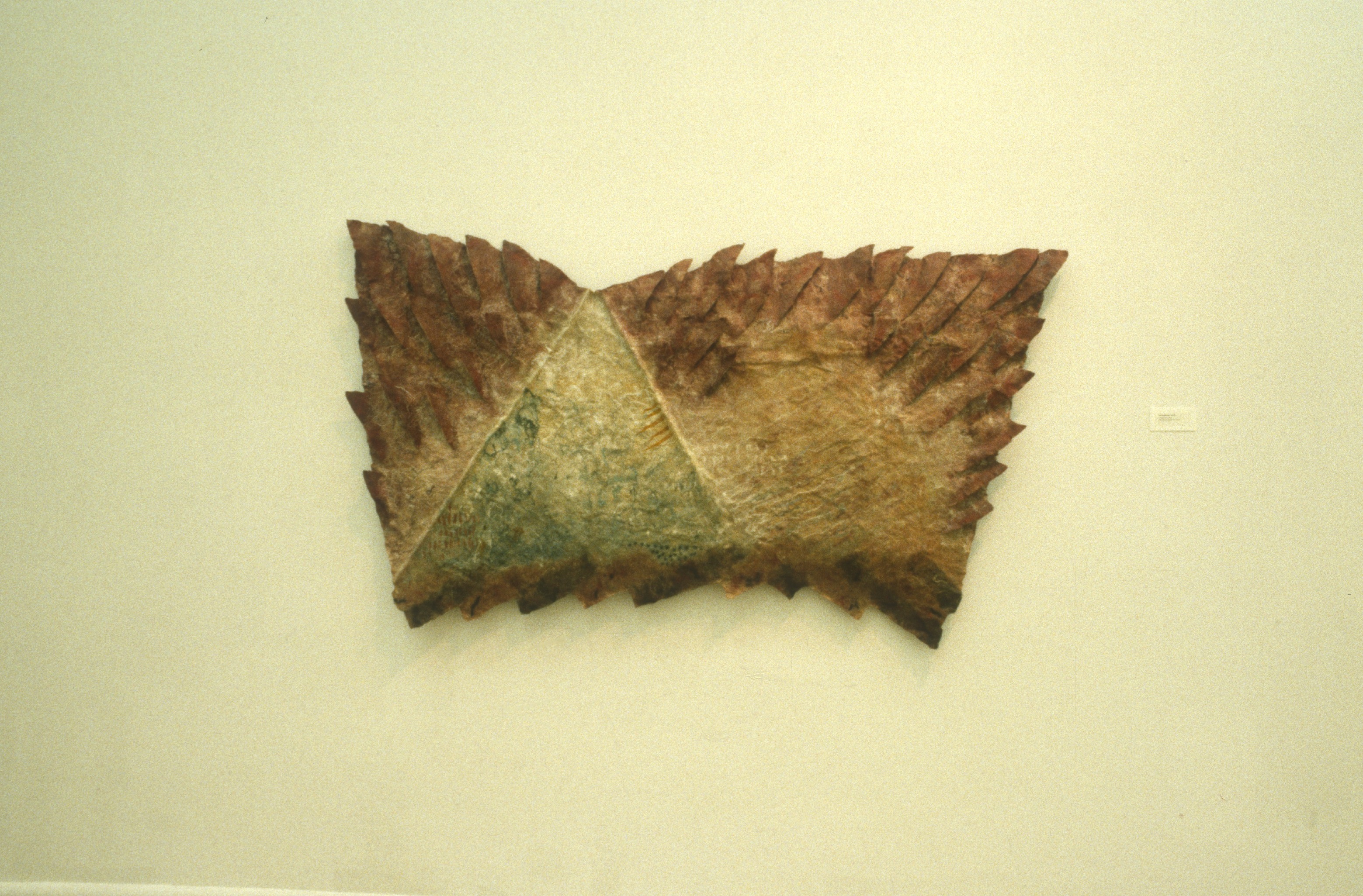 It is in the nature of textiles to mediate between nature and human culture, belonging to both and to neither. These works chart some of this ambiguous territory, where we face the dilemma of our implication in natural history. As objects they are equally artifacts of need and speculation.