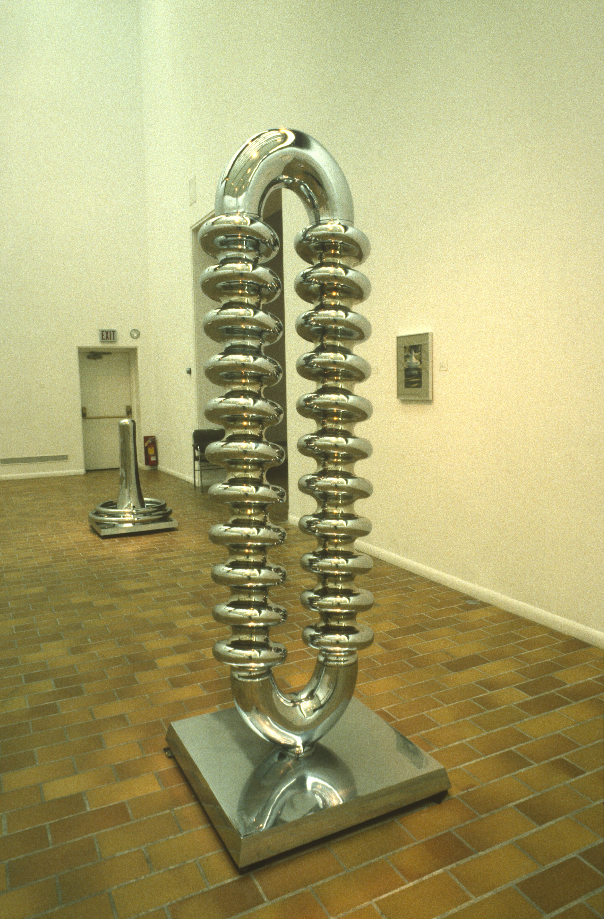 "Compact, vibrant and strong," adjectives used to describe Katie Ohe herself in the exhibition catalogue, apply equally to Ohe's work. The 28 elegant metal sculptures in this exhibition are "visually, physically and psychologically engaging .... People are invited to look, to move around, to touch, to push, to unfold, to interact with a form that can change and come back to rest", writes catalogue essayist Katherine Ylitalo.
