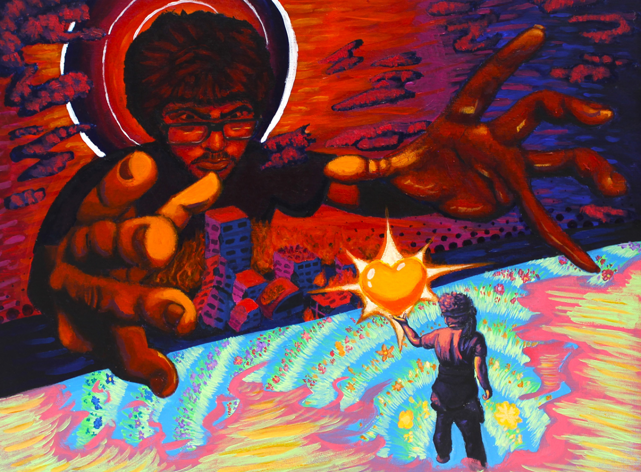 Brawn vs. BrainsA self portrait depicting my emotional conflict since the COVID-19 pandemic. I created two versions of myself -- both of which competing for acceptance and love. One version of myself was pushed down and out of sight, similar to seeds of a plant. That version then grew and broiled with anger and jealousy, destroying everything to achieve some form of acceptance. The other version was accepted, and was able to receive the love that both versions craved for. Although lacking in physical strength, the smaller version tackles adversity through morality, choosing mercy whenever possible: The Brawn vs. The Brains. |